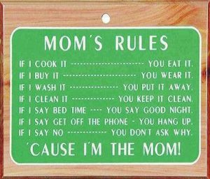 Кога мама вели да се јаде, тогаш мора да се јаде, кога мама вели мора цел оброк да се изеде тогаш мора се да се изеде, кога мама вели “ќе правиш јас како велам”, тоа така мора да се направи  и никако поинаку, кога мама вели “не е добро”, тогаш не е тоа добро и мора поинаку да се направи, кога мама дава да јаде директно во устата на детето, тоа мора да е “добро “иначе ќе се извалка, кога мама ми кажува опасно е да се качува по скали сам/а, тоа мора да е “добро” иначе ќе падне детето, кога мама вели “ти треба да си послушен/на”, тоа мора да е така, кога мама не дозволува да се лути детето, тоа мора да е така иначе ќотекот ќе се појави а и не е добро да се лути итн, итн, итн.